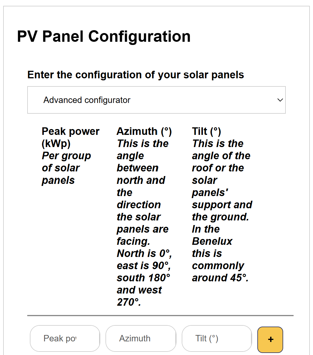 In the simple configurator, you only enter the total output of the PV system.