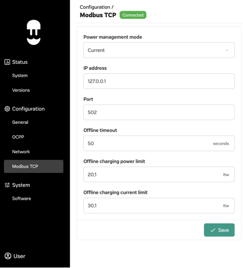 The communication between the SmartgridOne Controller and the Wallbox EV Charging Stations is established through API and Modbus TCP. No physical cables are required to the SmartgridOne Controller.