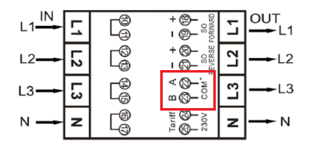 | B (pin 23) | RS485 B | RS485_NEG | RS485 B | TX- |
