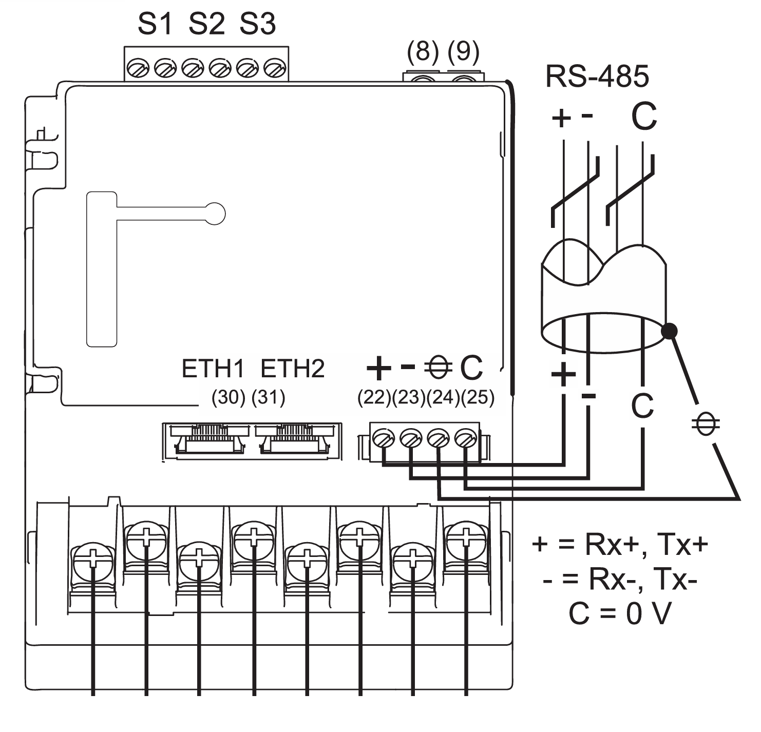 | Terminal 22 / + | RS485 A | RS485_POS | RS485 A | TX+ |
