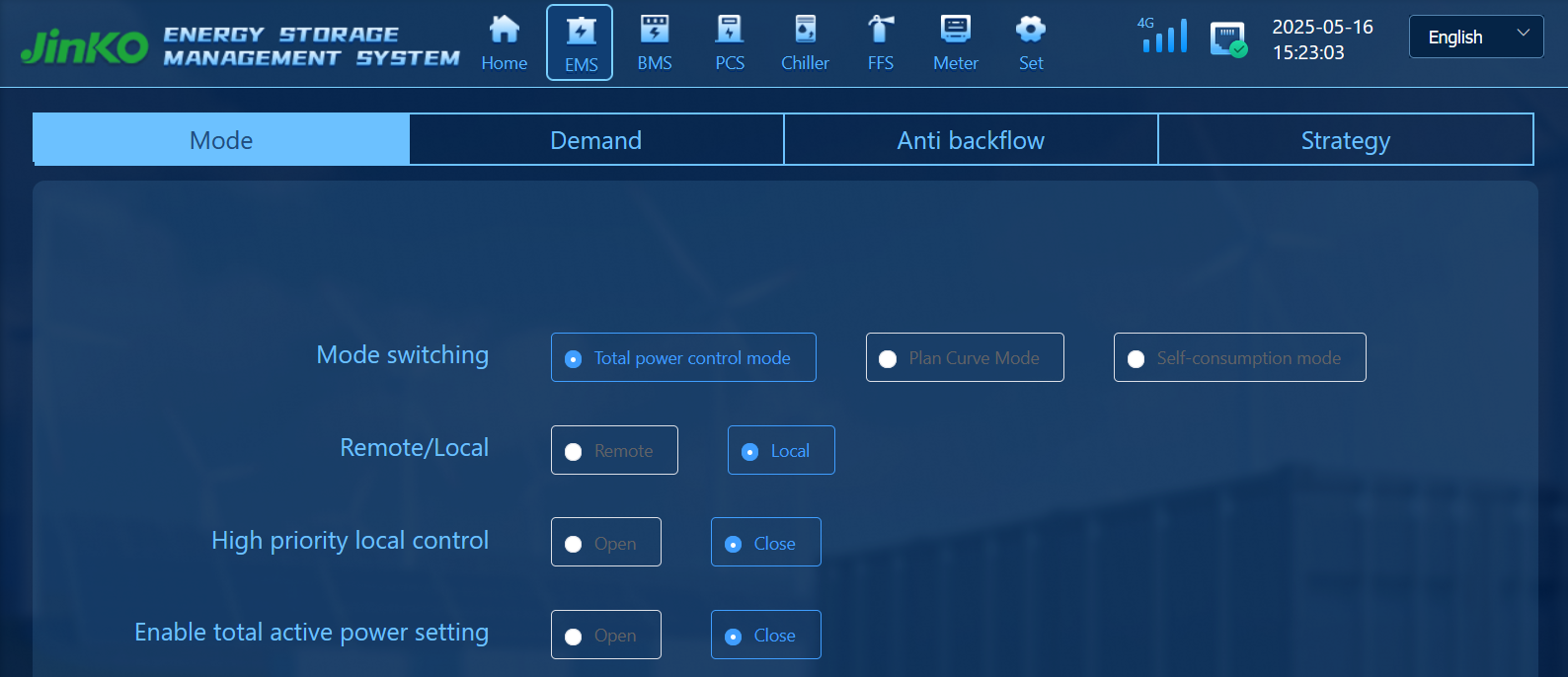 2b. Make sure High priority local control and Enable total active power setting are configured as Close: ![]() |
