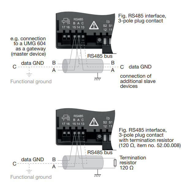 - For correct RS485 wiring: Follow the guidelines for RS485 wiring.