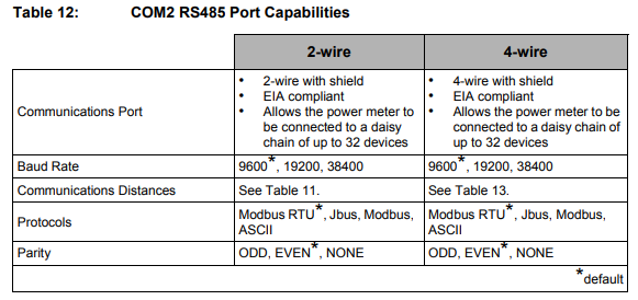 | Device Type | Modbus TCP (Ethernet) | RS485 |