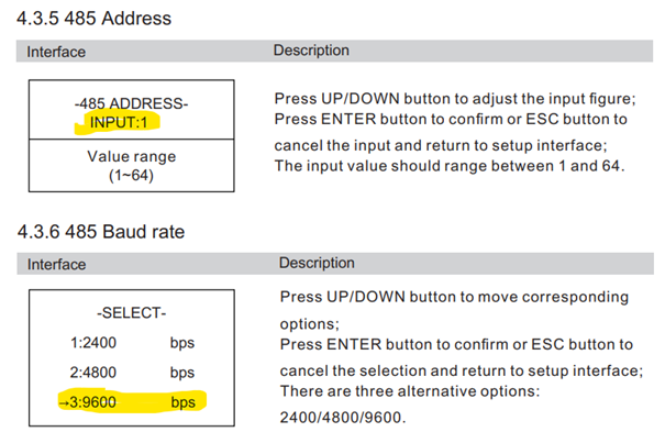 - For correct RS485 wiring: Follow the guidelines for RS485 wiring.