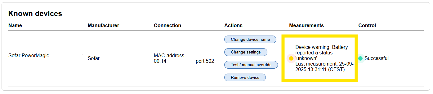 My Sofar PowerMagic shows a warning "Status unknown"?