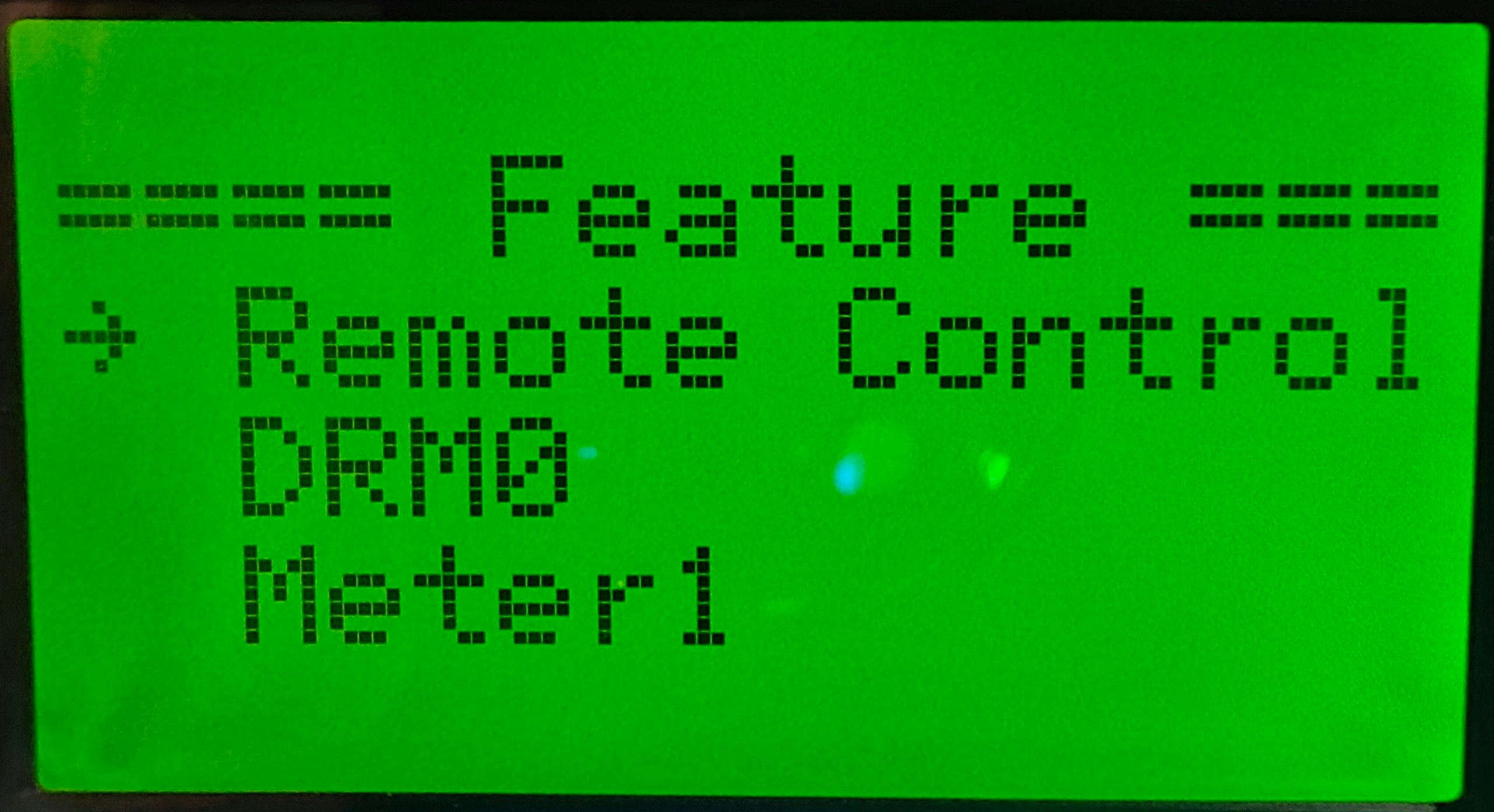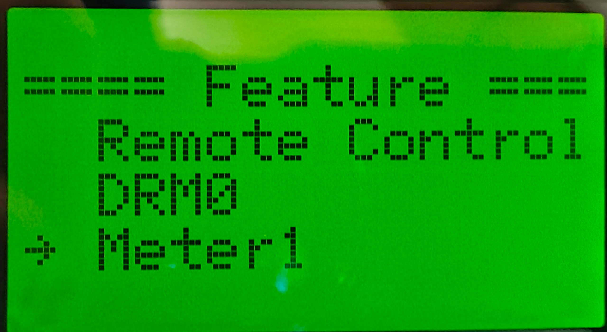 The control must be activated through the inverter, and the meter must be deactivated. This is done through the display in the Feature Parm menu. First, open the Feature Parm menu as follows: