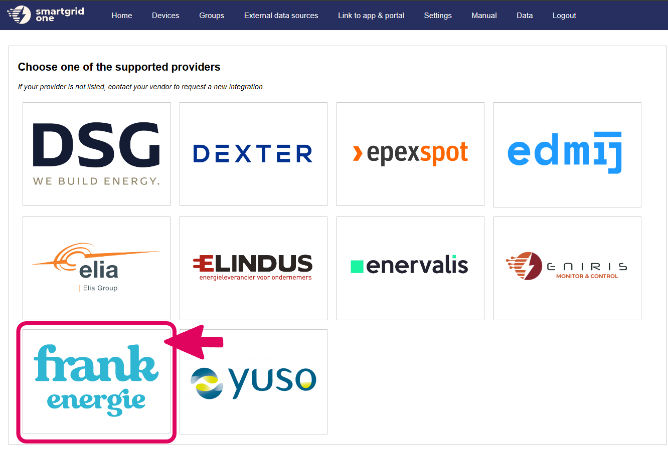 " Slim Handelen " by Frank Energie is a service that allows you as a customer of Frank Energie to use your battery on the imbalance market. The manual describes how we can set this up on the SmartgridOneController. At the end of this manual, Frank Energie will have control over the battery and the battery will be shown in the Frank Energie app. When setting up this integration, permission is granted to Frank Energie to control this battery.