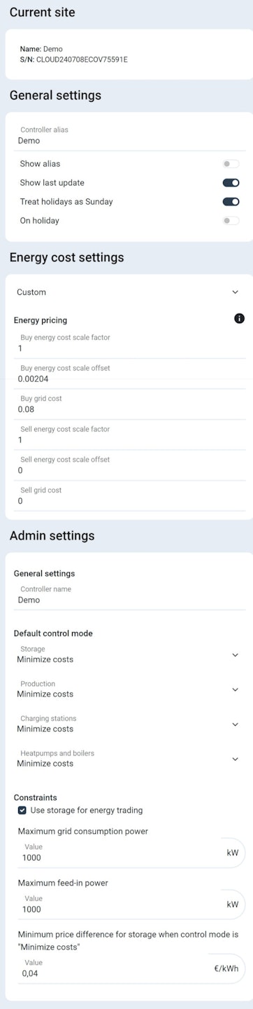 When you log in to the app, you will see a standard overview of all types of devices connected to the SmartgridOne Controller.